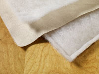 | Cut two 32" x 26" pieces of canvas. Sew three sides together, leaving the top open. Sew a 1/2" hem at top of sack. Working from the bottom and ensuring your line is straight, stencil the first line. I place painter's tape as a guide to keep a straight line, and I stencil from the middle out to ensure everything is centred. | ![]() |