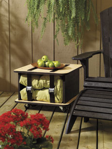 De simples tablettes en pin vous permettront de créer un tabouret escamotable sur roulettes que vous pourrez utiliser à l'intérieur comme à l'extérieur.